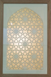 Posted on 24/01/201616/02/2016 by Andrew Mark Franks Jali screen. 10 fold geometric pattern. Laser-cut card and tissue paper. 32cm x 47.5cm. Sold