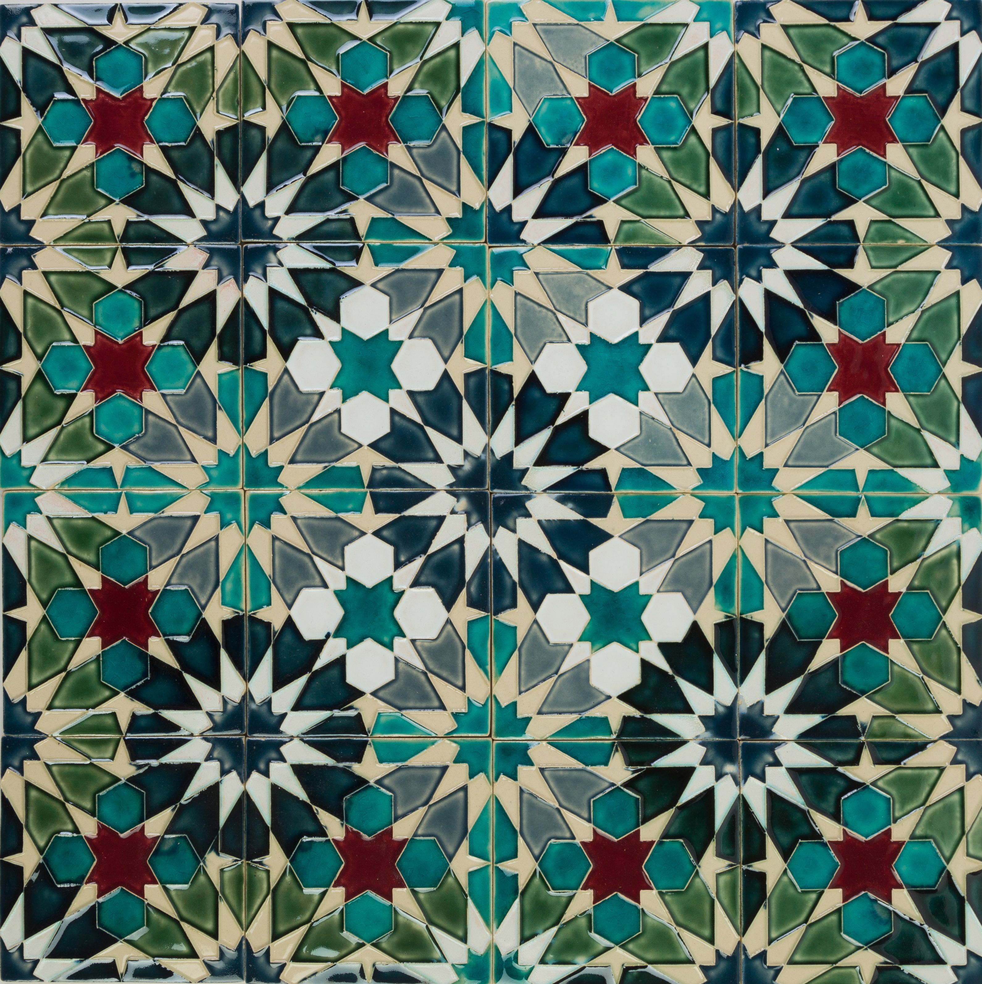 Posted on 02/02/201616/02/2016 by Andrew Mark Franks Set of 16 ceramic ties based on a four-fold Islamic garden. 47cm x 47cm. Sold